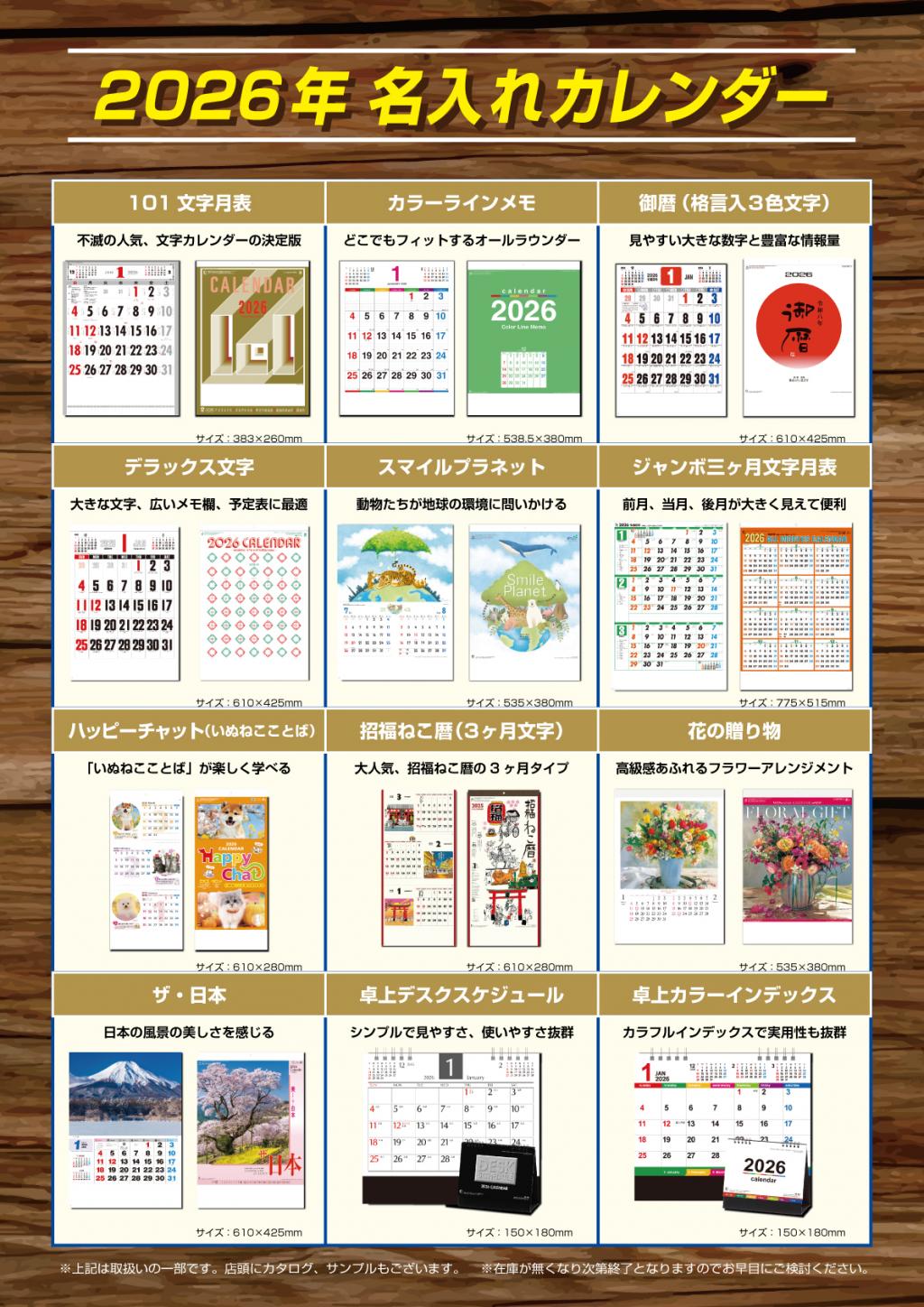 年末年始のご挨拶に活躍する名入れカレンダー!承り中です!